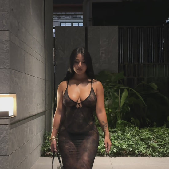 The Tease&Co Black Lace Sheer Gown is designed for women who own the night. Crafted from delicate black lace with sheer panels that trace the body’s silhouette, this gown offers a daring glimpse while maintaining refined elegance. The figure-hugging cut elongates your shape, creating a fluid, feminine line that moves effortlessly.